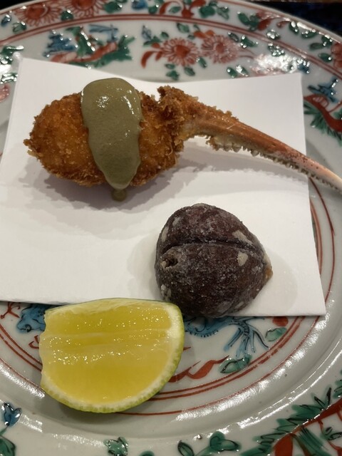 ⑧松葉蟹(楚蟹・雄)爪のフライ、酢橘添え