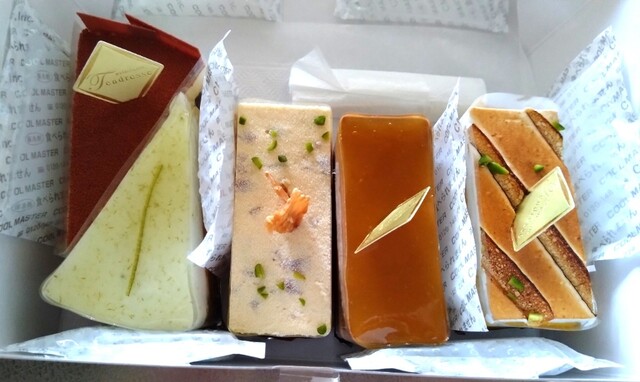 シェフの技術とこだわりに敬意をもって持ち帰り、味わうために、保冷バッグの持参がおすすめです(プチガトー4~5つまでなら、幅18*奥行き12*高さ8.5cmの箱が入れば大丈夫です。アントルメであれば、幅20cmあるようなものがよいです)。