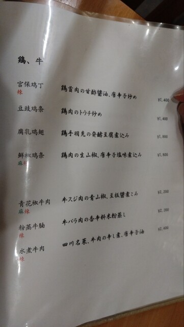 メニューには「麻」「辣」の表示があるので辛い物が苦手な方でも安心です。様々な種類のスパイスや唐辛子を使用した料理は見事な完成度で、刺激的でありながら上品な味わいです。香りもとても良いです。トップレベルの中華料理ながら値段はかなり抑えられています。