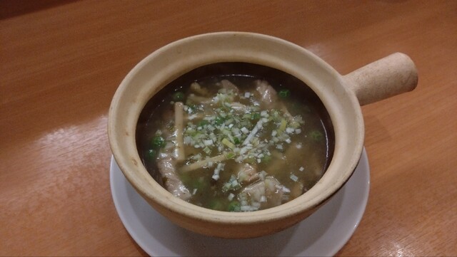 ピリ辛(青唐辛子的辛味?)の醤油味の煮付けでした。タイの身はふっくらやわらかで、あっさりめの味付けです。少し酸味もありました。乗せられた白髪ネギとの相性も抜群で、ネギに美味しいタレがしゅんで美味しかったです。