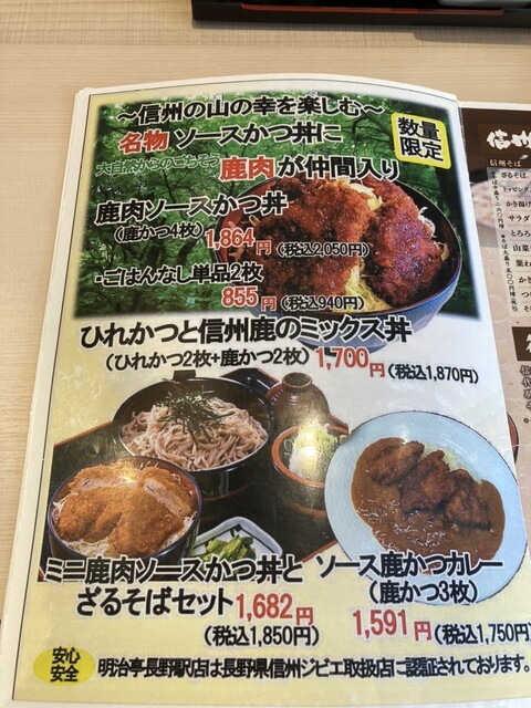 お目当ては決まってるのですが一応メニューを見たら鹿肉のカツ丼! 少し心が揺らぎましたが、他県で馬肉のカツ丼と言うのに痛い目にあってるのでシンプルにカツ丼...