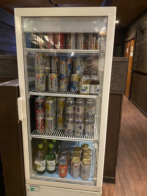約4,000円でレアステーキ、肉厚ハンバーグ、豚ロース、ソーセージ、おつまみ、唐揚げ、サラダ、カレーまで心ゆくまで楽しめます。ドリンクは冷蔵庫からセルフで取り出すスタイルで飲み放題。「飲み会に行くならここで十分!」と思える満足度。