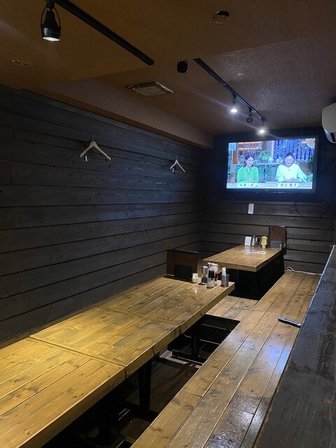 木を基調とした落ち着いたインテリアで、居心地の良さが際立ちます。広めのテーブル席が多く、グループ利用にもぴったり。