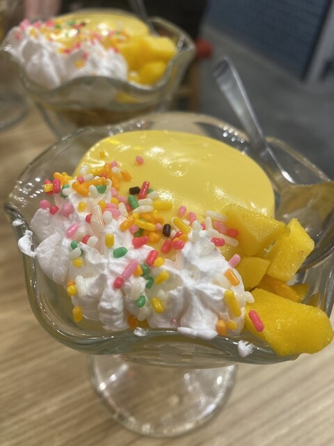 デザートのマンゴープリンはボリュームたっぷりでした。