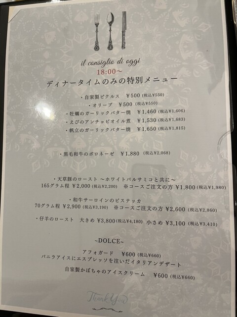 11月訪問時のメニュー