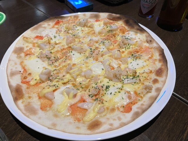 ピザは生地薄くて、パリパリとしっとりと程よい感じ。ペロリと食べられる。