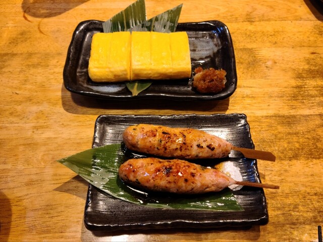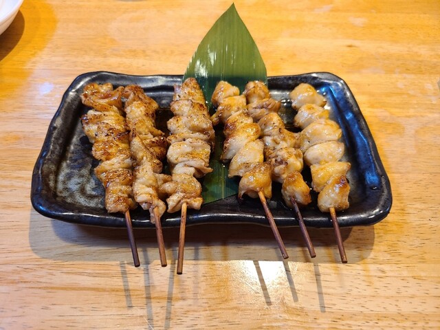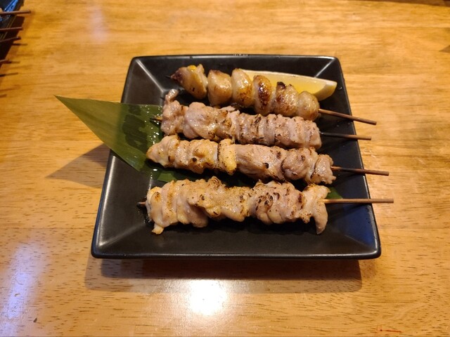 唐揚げ、砂肝、とりもも、皮、ぼんじりの焼き鳥の