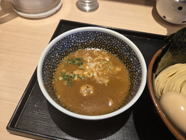 つけ汁は熱々で魚介の風味が強く、濃厚な味わい。