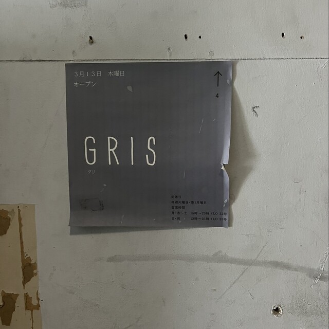 ビルの4Fでひっそり営む《GRIS》さんへ、少し前ですが1人でお邪魔してきました。