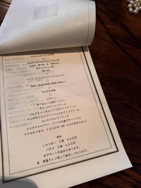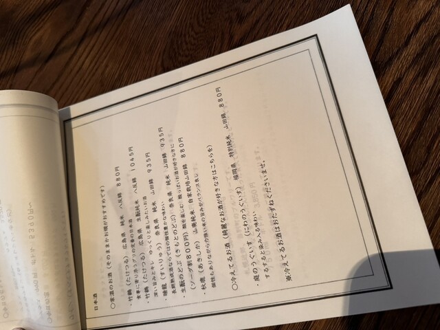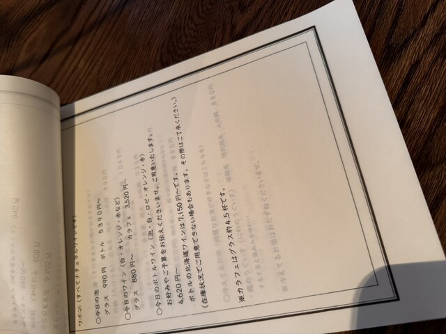 今回はおまかせ料理(5500円)を事前にお願いしていたので、テーブルにはおしながきが!