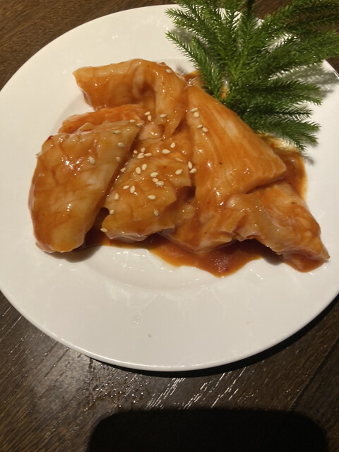 キムチとセンマイとサラダ2種。本当は「うしのすけさらだ」を食べようと思ったのですが、既に売り切れ。うしのすけサラダに使っているドレッシングはメチャクチャ美味しいので、それを食べに来たのですが、今回はお預け。そのドレッシングを使っているメニューは他にはないのが残念でした。ひょっとして、私の前回の書き込みで人気になったのかな。。なんて思っています。