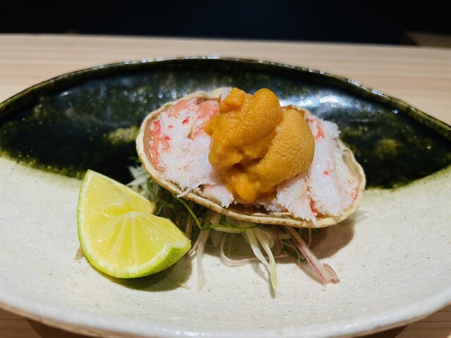 クエの煮凝りからスタート、太刀魚の南蛮漬け→鮑→クエの刺身→鰹→毛蟹ご飯(ミソ+ウニ合え)→鯨の尾のみ(希少らしい)お酒が進む、鯛の酒盗と自家製チーズ(自家製チーズ旨し)→たたみ鰯の珍味3点盛り→焼物2点、この段階ですでにかなりお酒が入りこれから握りを食べれるか不安でしたが、クエと松茸の土瓶蒸しで胃を温めて握りスタート、中トロからスタートと、コハダ→新イカ+ゲソ→赤貝(肉厚)→アジ→イワシ→キンキ肝添え→新イクラ(手巻き風)→うに(はたてさんの雲丹)→車海老(半生最高)→鮪2点大トロ+赤身漬け→アナゴ→巻物2点鮪+干瓢(酔っ払って写真撮り忘れた…)しっかり堪能させていただきました。