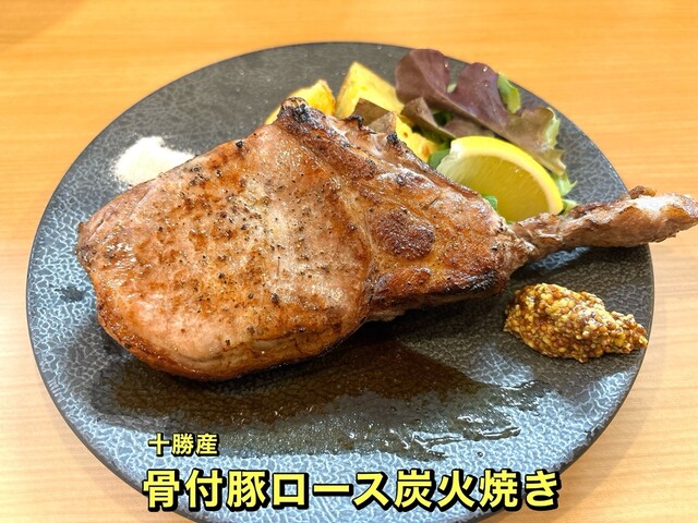 低温調理された骨付き豚ロースの炭火焼き、そして個人的に大好きなニンニクとアンチョビのピザ。