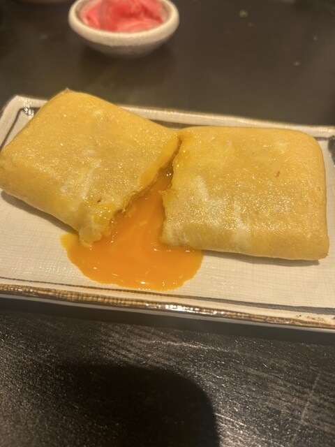 何回も行ってるわりに 初めて食べただし巻き玉子もとろとろで映えてました笑 出汁がよくきいてて添えてた紅しょうがとたべるととっても美味しかったです(ृ´͈ ᵕ `͈ ृ )
