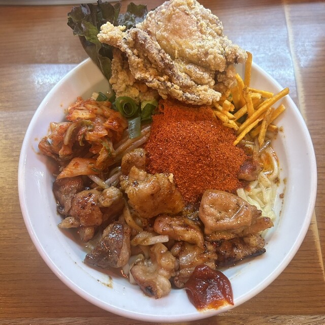 唐揚げはザクザク衣で中はジューシー、辛いたれに付けて食べると最高です