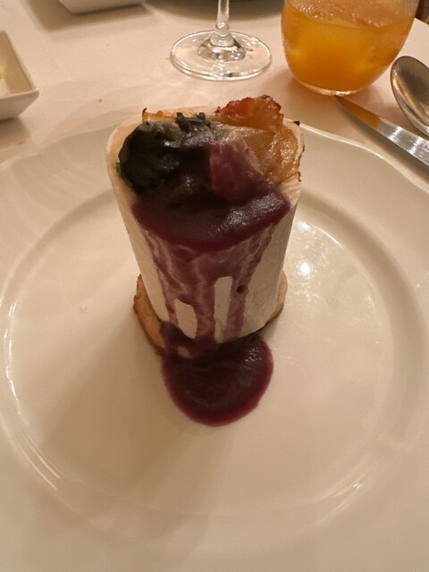 春のメニューは見た目も美しく食べても美味しかったです。イカとイカ墨と豚のフリットが合わさった一皿が春らしく、魚介とお肉のマリアージュ、とても好きでした