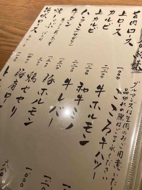 メニューも、お肉の部位に特徴が書いてあるので非常に頼みやすい。