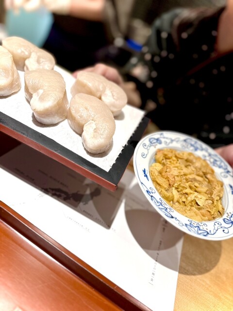 ◎鯛の皮、あげてあり、お煎餅のようで、上から鱗をカリカリにしたものがかかっていたもの。