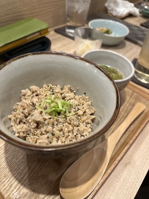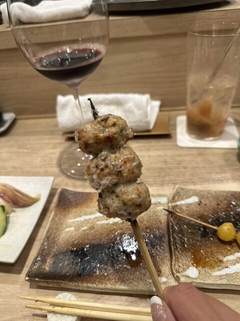 串はつくね、ハツモト、レバー個人の好みというのもありますが、つくねは小ぶりで、中に軟骨入ってるのかな、紫蘇とのバランスがとても良い。最近食べた中で1番好きかも。名前忘れましたが地鶏の希少部位もありました。こちらも表面はカリっとしており、中はふわっと熱くてとても美味しかった。