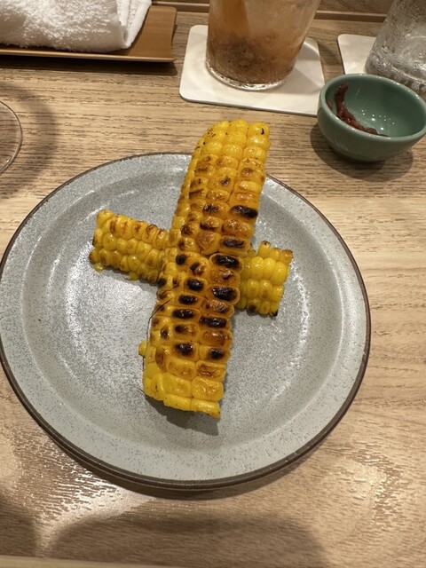 途中お腹いっぱいになってきたので、串はストップし、トウモロコシをもらいました。甘く香ばしく醤油のほのかな香りも良い