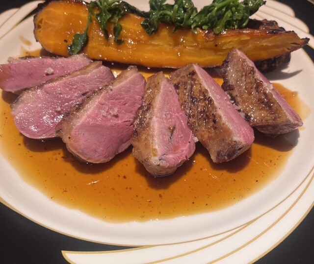 付け合わせのピューレも食感、甘味が肉とワインを繋ぐ