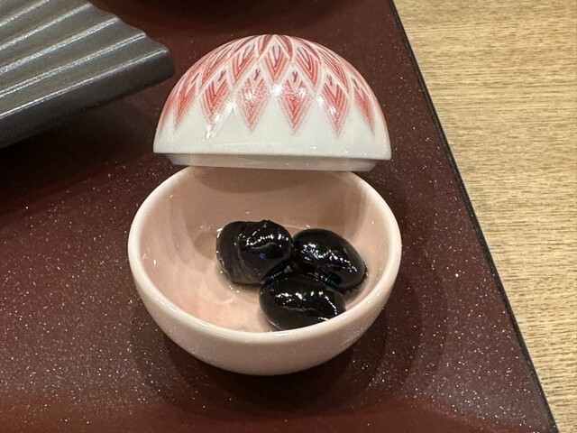 食後にチョコレートコーティングされた海老煎餅が出てきましたが私はチョコレートが苦手なので相方に譲りました。最初に甘さがきて後から海老の香りが鼻から抜けて行く感じだったそうです。