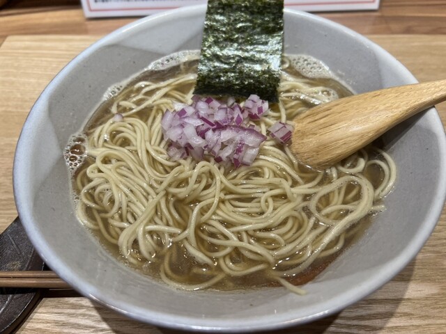 具が海苔と玉ねぎのみのシンプルなラーメン。伊藤の流れだから具は別注か!とリサーチ不足を露呈するも「もうすぐ閉店なので最後の肉を底の方に入れておきました」と嬉しい店主の言葉!関東も捨てたもんじゃ無い、ありがとう!