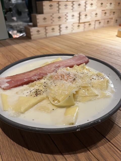 フードメニューもどれも美味しかったのですが、特に印象的だったのは「カルパッチョ」と「生ハムビスマルク」。新鮮な刺身とクリーミーなソースの組み合わせは、ビールとの相性抜群。生ハムビスマルクは、カリもちの生地に半熟卵とトリュフの風味がたまらない一品でした。