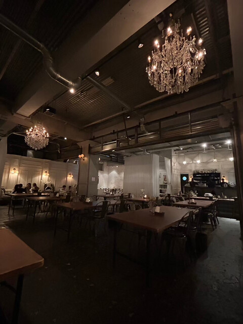 打ちっぱなしのコンクリートとシャンデリアが印象的な、洗練された雰囲気のイタリアンダイニングに再訪しました。