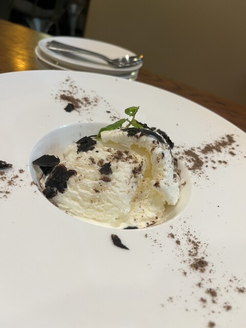 デザートのトリュフアイスもぜひお試しを。目の前でトリュフを削ってくれます。トリュフの豊かな香りが、塩気のあるミルクアイスと絶妙にマッチして、最後まで美味しくいただきました。