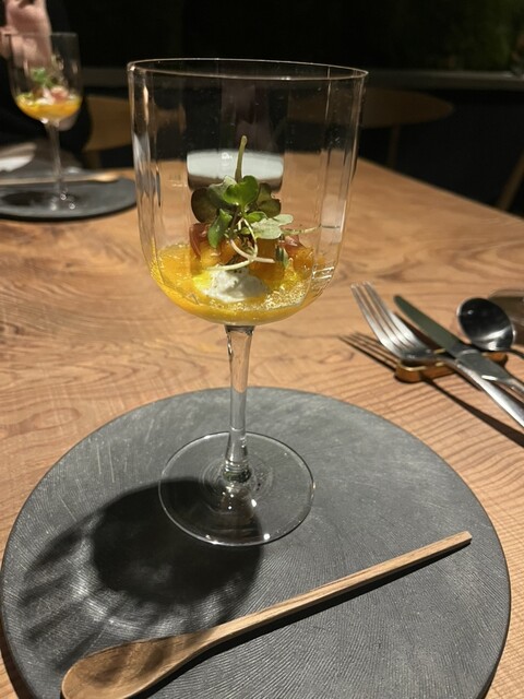 今回はディナーコースとワインペアリングを注文。全12品のコースは、旬の野菜や果物をふんだんに使った内容で、最初から最後まで飽きさせない構成でした。