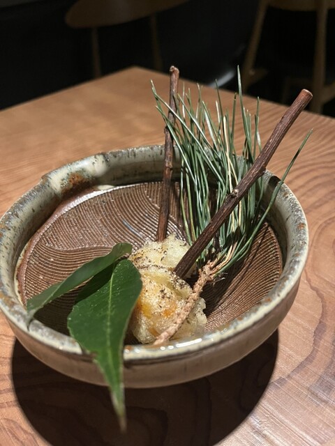 トリュフのアミューズは、温められた石を敷き詰めた器にライ麦パン、その上にヤギのチーズと削りたてのトリュフがたっぷり。香りが際立ち、特に記憶に残った一品です!