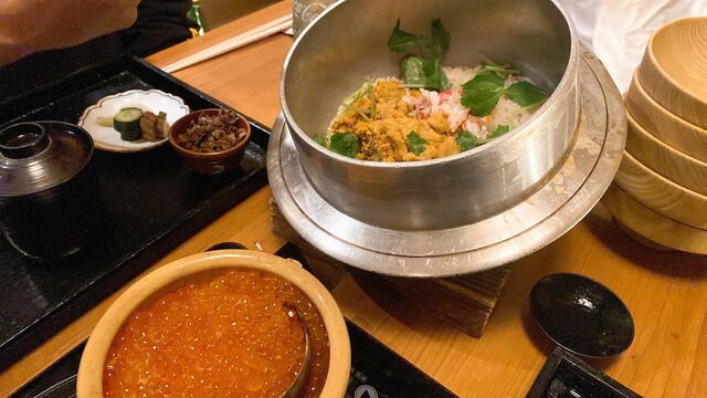 最後は炊き込みご飯に、おかわり自由のいくらを
