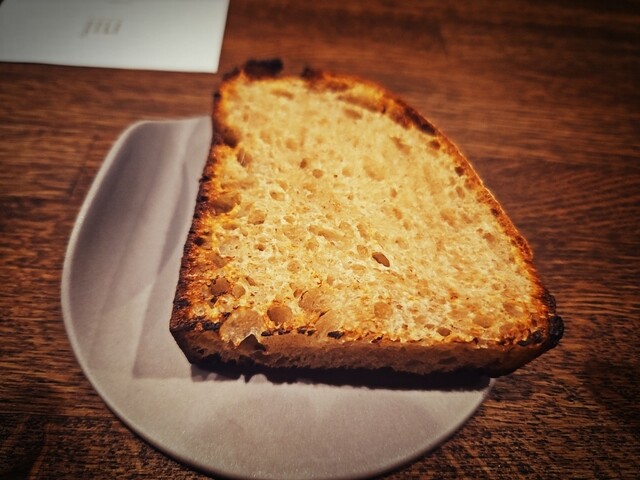 3月19日にオープンした渡辺料理店の新店舗でコースをメインとした薪火フレンチjiu(慈雨)。慈雨とは「万物に力を与える恵みの雨」という意味があるようです。こちらのお店は楢の木の薪を使った薪火料理を楽しめるお店です。お店の1階はキッチンとカウンター席、2階は川辺の景色を楽しめるお席でライトアップしていました。桜はまだ咲いてなかったですが咲いた頃は隠れた花見スポットとなると思います。さて、料理は10品16000円のコースのみでTable Checkからの予約となっています。また、来月以降はランチも始まるそうです。お店を委されているのは大和田龍之助シエフでブラッスリーレカンで研鑽を積んでカンテンサス、マルシェデジュウバン、ル ビストロ、336ebisuなど(ネット記事より)数々のレストランを経験された方です。コースの10品の最初から最後まで訪問時は3時間以上かかったので3時間位かかると考えて下さい。メインは羊か豚を選べました。