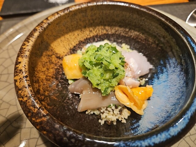 料理も福島産の食材を使い繊細で素材そのものを生かしたシンプルなものから手の込んだお皿までありシェフのこだわりが見え素晴らしい舞台でした。こちらのお店も定期的に通いたい素晴らしいお店です。