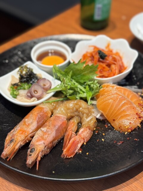 海老・サーモン・たこ・キムチがバランスよく並んで映え感も◎✨