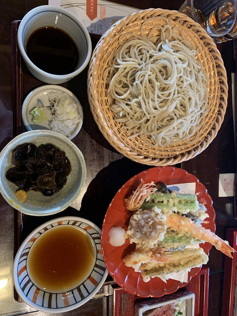 店主おすすめの蕎麦御膳は,蕎麦の懐石料理です。山形牛のローストビーフやニシンの山椒漬けなどの前菜に天ざるとキクラゲのおひたしなどが付いて,心もお腹も満たされました。大人気店で,県外ナンバーの車がたくさんありました。早めの来店がお勧めです。