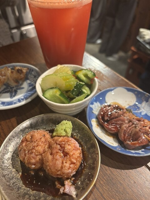 生つくね、こころレアたれ、心配になるくらいの生唐揚げ(笑