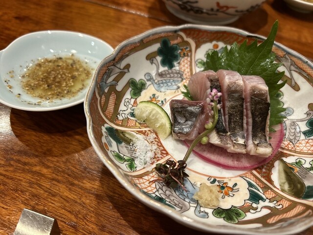 秋刀魚で舞茸を巻いて、肝醤油をかけながら焼いたもの。当たり前にひと口ではきれいにいただくことができず、友人の真似をして少しずついただきました。 ええその通りです。1度お見苦しい様を生み出しました。