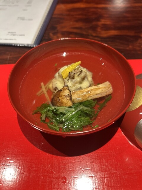 2ヶ月振りの訪問。今夜も満足のいく季節感溢れるコースでした。秋らしく松茸が要所に使われていました。どの料理も美味しかったけど、鮭の幽庵焼き、デザート前の炊き込みご飯が、この新米の季節ならではの白米とお漬け物の盛り合わせ。この2品が特に美味でした。いつも思うけどコスパもかなり良いと思います。