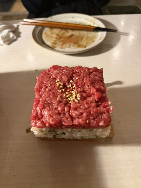 久しぶりに『すっごい焼肉』を利用しました。ちょっと高めの値段設定だけど、お肉はとっても美味しいです。特に薄いサーロインを炙って生玉子で頂くお皿は、お肉が口の中でとろけるようで何度食べても美味しいです。最後に食べたお肉の押し寿司も◎。ご近所に欠かせない焼肉屋さんです。
