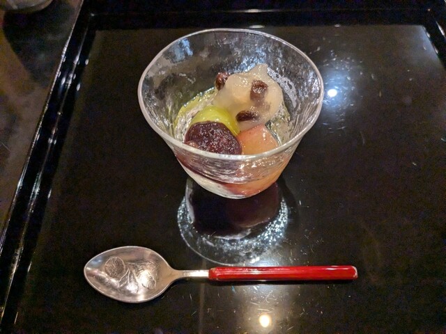 コースは栗を使った料理にキノコや肉団子など素朴ながら上品なコース。栗ごはんをお代りさせてもらったのでお腹いっぱいに