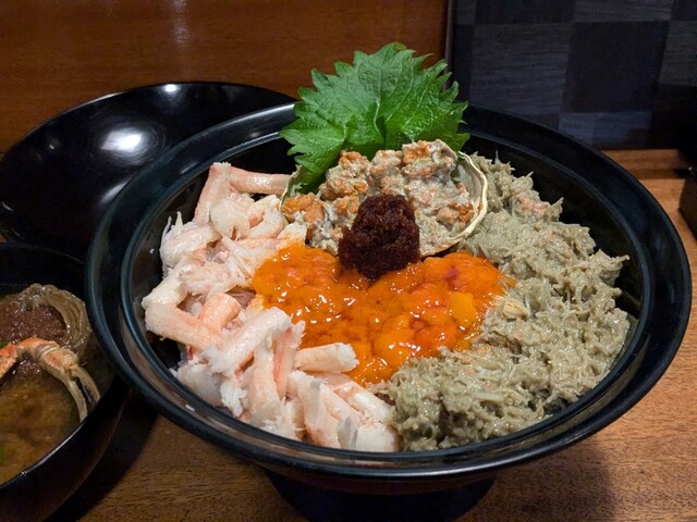 親ガニの身から内子、外子を見事な丼にしてくれました。もう、この上モノだけでいくらでもお酒が飲めそう。蟹の身もたっぷり、内子と外子を上手に仕事して調和してるものの、味変の嵐のような丼。ペロッといけました。丼を舐めたかったぐらい。松葉ガニが余りに高くなって食べる気がしなくなったけど、セイコガニでこんなに感動させてくれてありがとう!必ずリピートしますね