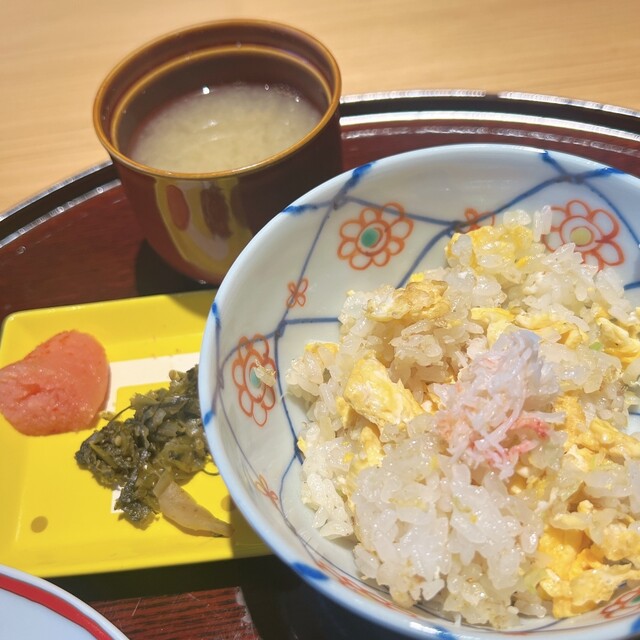 鉄板でパラパラに香ばしく仕上げた焼き飯に、途中で明太子や高菜を乗せて味変しながらいただきました。しじみのお味噌汁、有馬山椒のじゃこも良いアクセントに。このじゃこ、ほんとすきです!!!