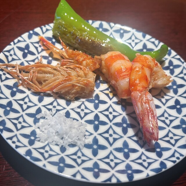 目の前で焼き上げられる車海老は、香ばしさとぷりぷり食感が最高!