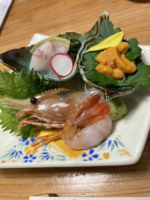 接待で2度目の訪問。 今回は『三大黄金しゃぶしゃぶコース』【華】と贅沢コース。お通しのおがの三大珍味盛り合わせから始まり、お造りは3点盛り合わせ(特大牡丹海老、中トロ、海水うにどの料理も超絶品で美味しかったですが中でも焼き物の活蝦夷あわびのステーキがヤバかった!