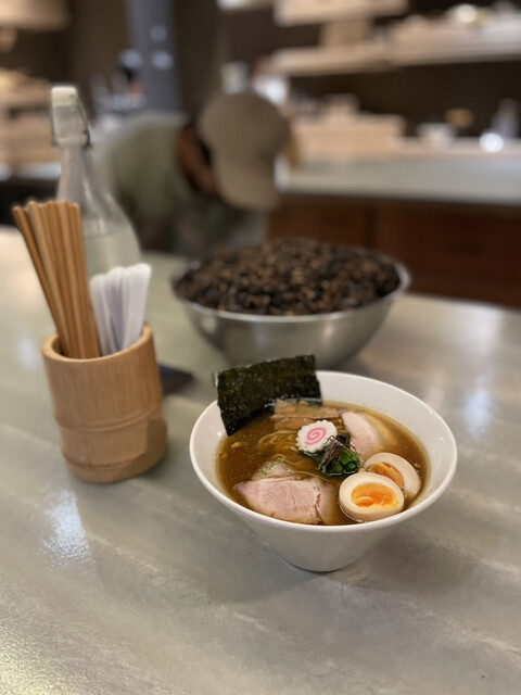 麺が衝撃的。乾麺の稲庭中華そば使用。啜るっていう単語と1番相性いい麺かもしれない。