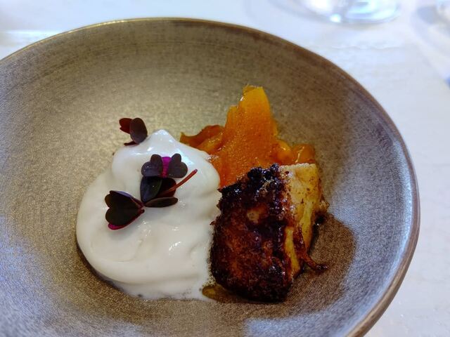 最初に出た鮑は驚くほどの柔らかさで、カリフラワーとアワビの煮汁の軽いソースも絶妙で出だしから魅了されます。