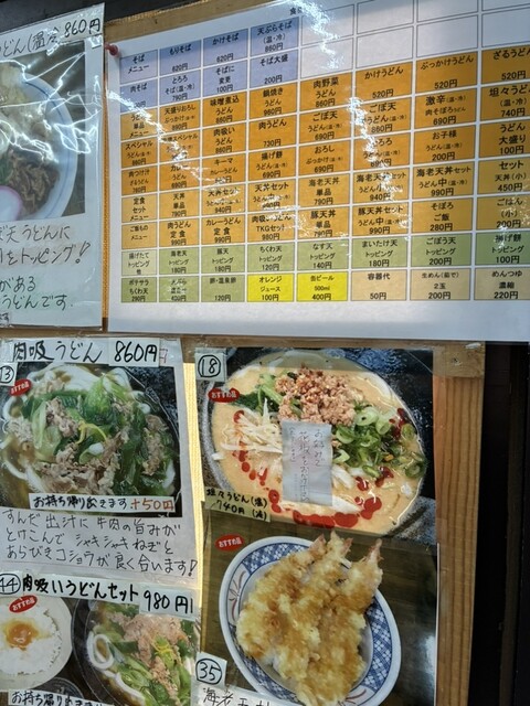 スタンダードな[かけうどん]や[ぶっかけうどん]等以外に[担々うどん]、[肉吸いうどん]、[キーマカレーうどん]なんてのもあります。