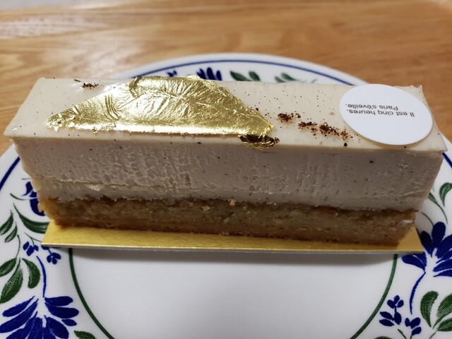 バニラのムースに金箔が飾られ、土台のサクサクのタルト生地との相性抜群。バニラケーキの中では最高の逸品。